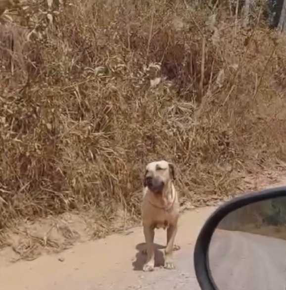 Durante três dias, um cão de quase 60 kg permaneceu à beira de uma estrada, uivando e esperando por alguém que nunca voltou.