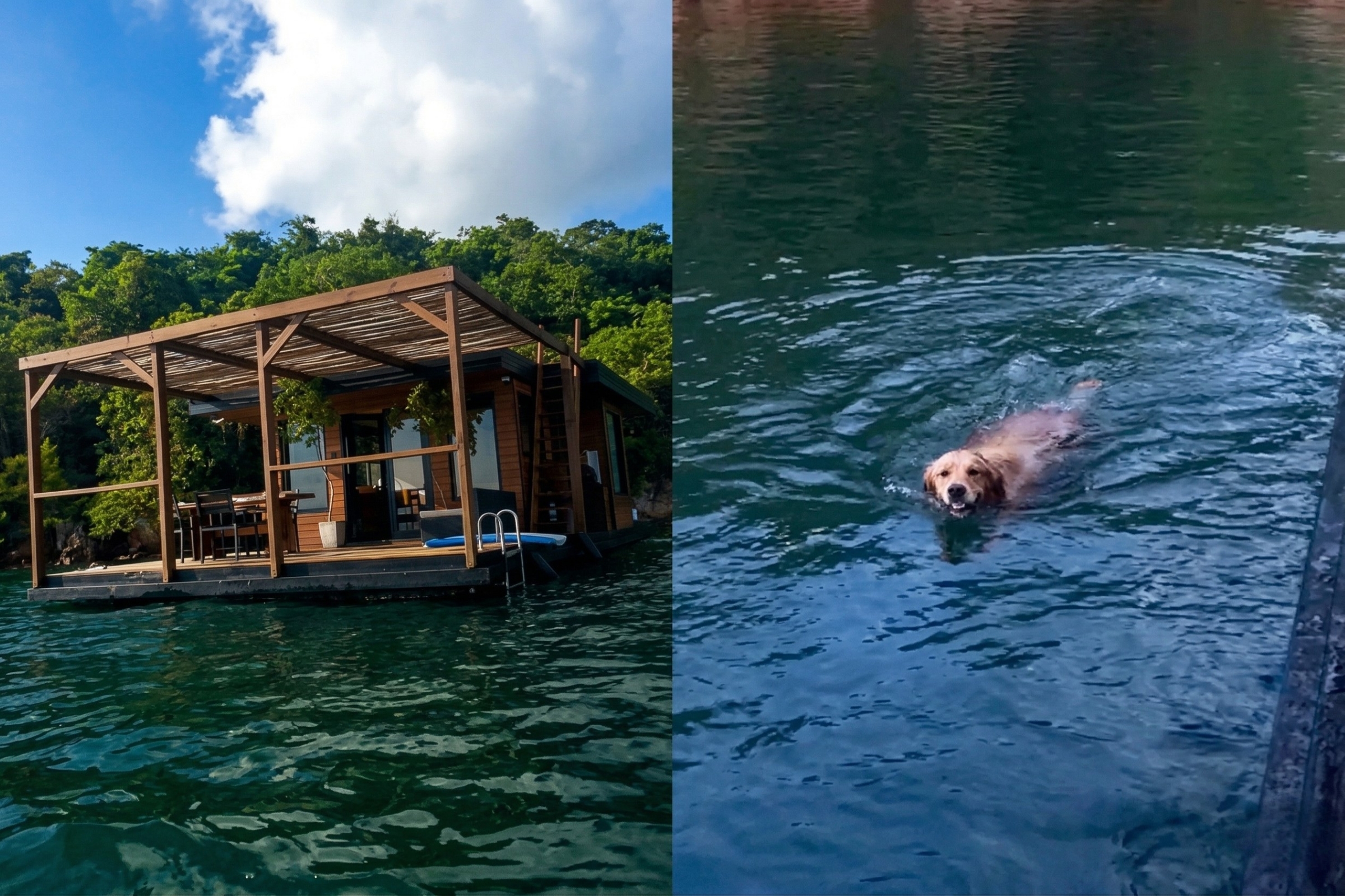 Em meio ao silêncio, ao mar e à tranquilidade do lugar, uma golden retriever chamada Piranha surgiu simplesmente do nada e começou a fazer companhia para Caroline.