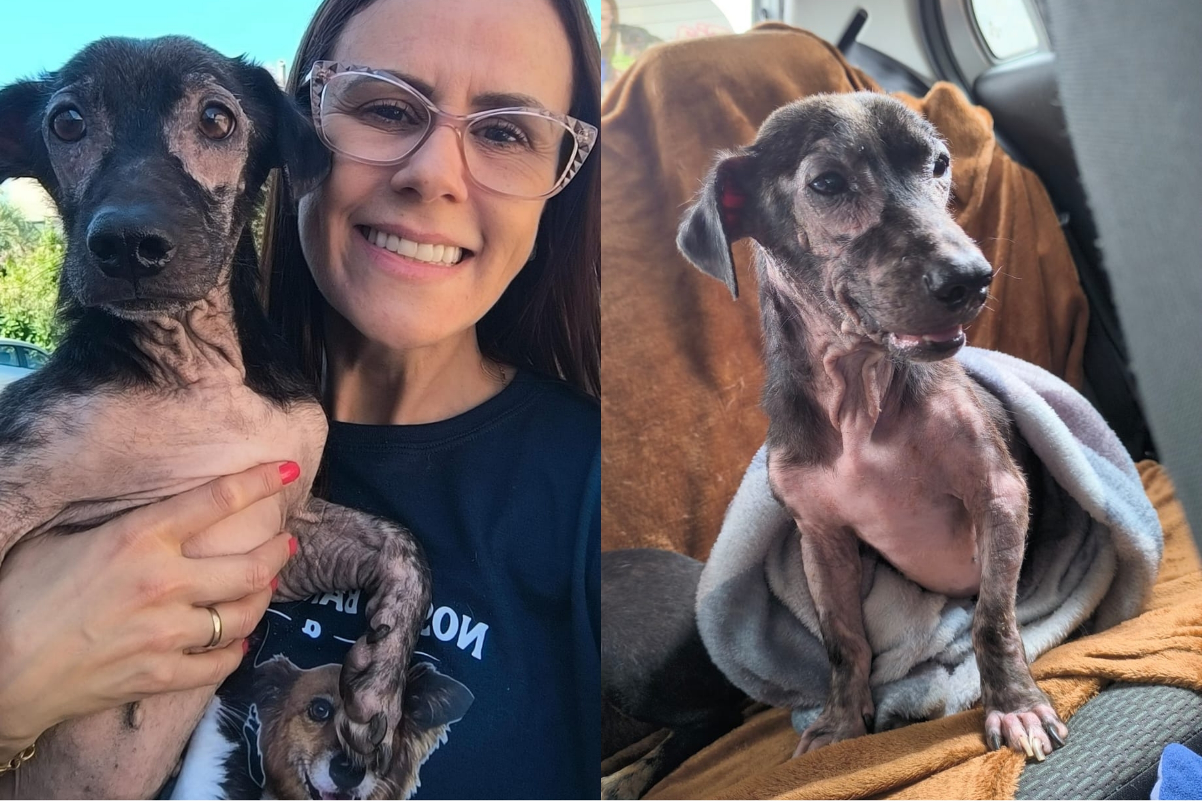 Em entrevista ao portal Amo Meu Pet, a protetora Vivian Espíndula da Cruz, conhecida como Tia Vivi, contou que o resgate aconteceu após um pedido urgente de ajuda. “Quando vi o vídeo que me enviaram, me cortou o coração”, relembra. Amendoim foi o terceiro caso recente de sarna demodécica que chegou até ela em menos de dois meses.