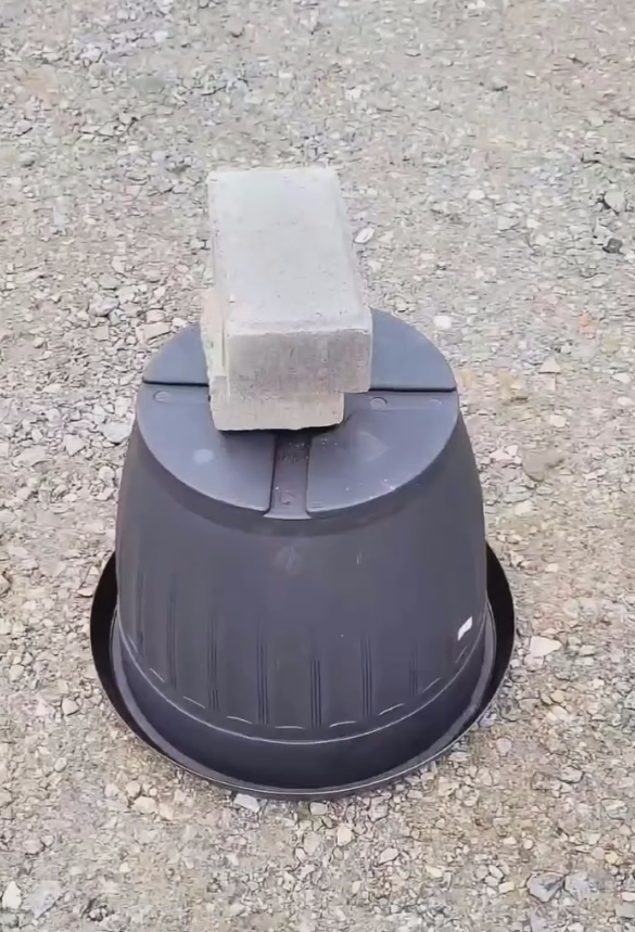 "Deve ser um bicho forte": Biólogo se surpreende ao encontrar balde com dois blocos de cimento em cima deixados na rua