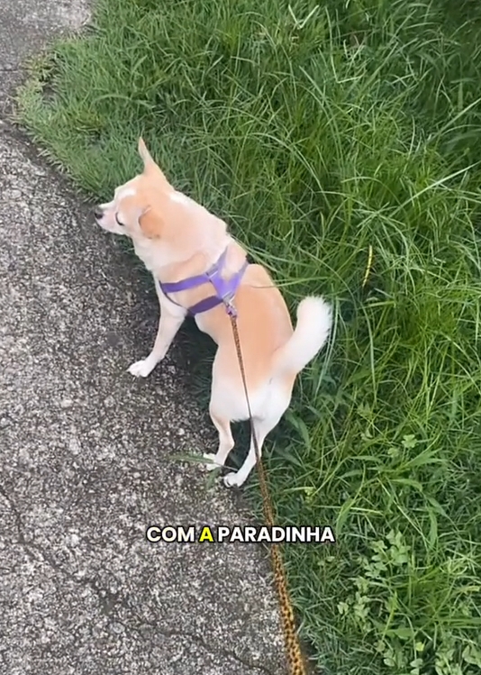 Apesar do jeito desajeitado, a cachorrinha leva a vida normalmente — e parece não se importar nem um pouco com os comentários do tutor.