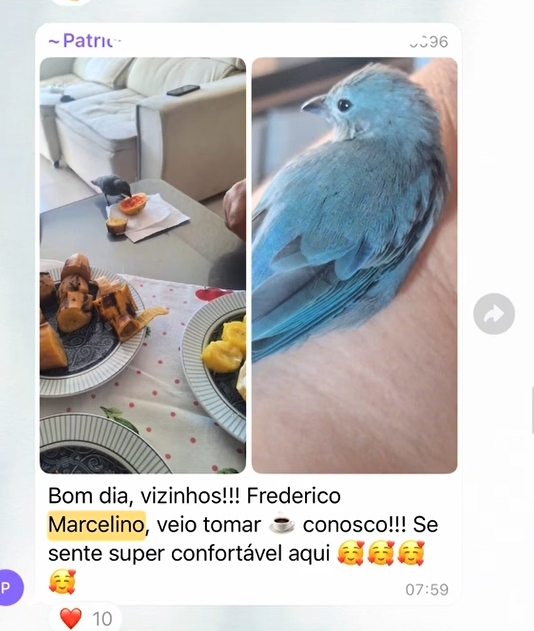 Em poucos minutos, as respostas começaram a surgir, e uma descoberta surpreendente tomou conta do grupo: o passarinho aparentemente “morava” em vários apartamentos ao mesmo tempo.