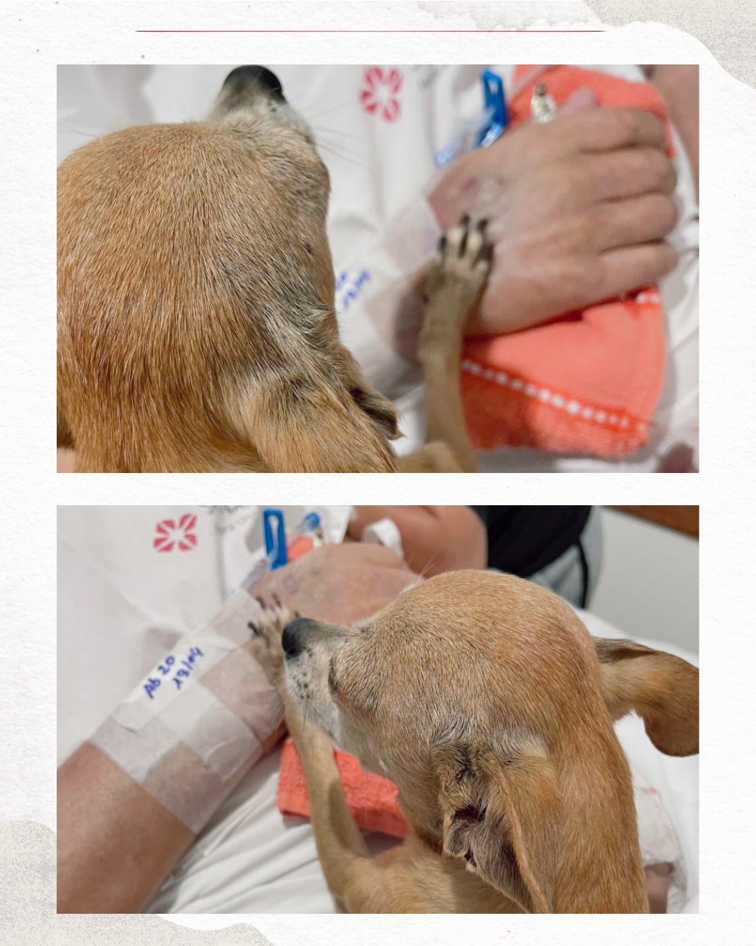 Diante disso, e seguindo todos os protocolos necessários do hospital, a equipe autorizou a entrada da pequena companheira.