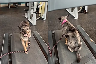 Cachorrinha fica famosa por criar estratégia para caminhar o mínimo possível na esteira: "Treino intervalado"