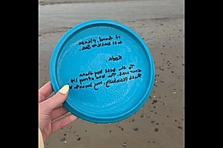 “Jogue de volta ao mar”: Jovem recolhe frisbee achando ser lixo, mas mensagem escrita no brinquedo a faz chorar